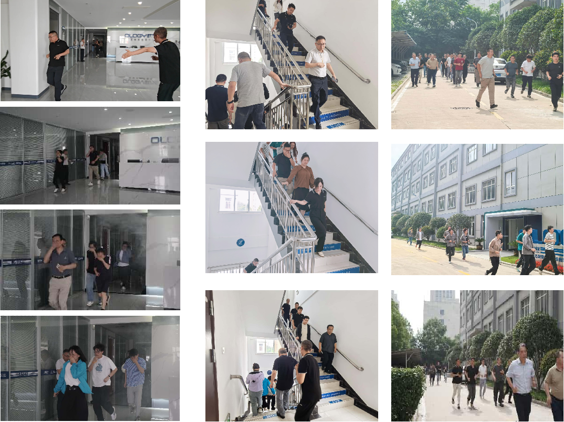 疏散引導(dǎo)組迅速到位,指引員工按照預(yù)定逃生路線,彎腰低姿、捂住口鼻,快速撤離至安全集合點(diǎn)。整個(gè)過程緊張有序、分工明確,全體參演人員在規(guī)定時(shí)間內(nèi)完成疏散,充分檢驗(yàn)了應(yīng)急預(yù)案的實(shí)用性和可操作性。